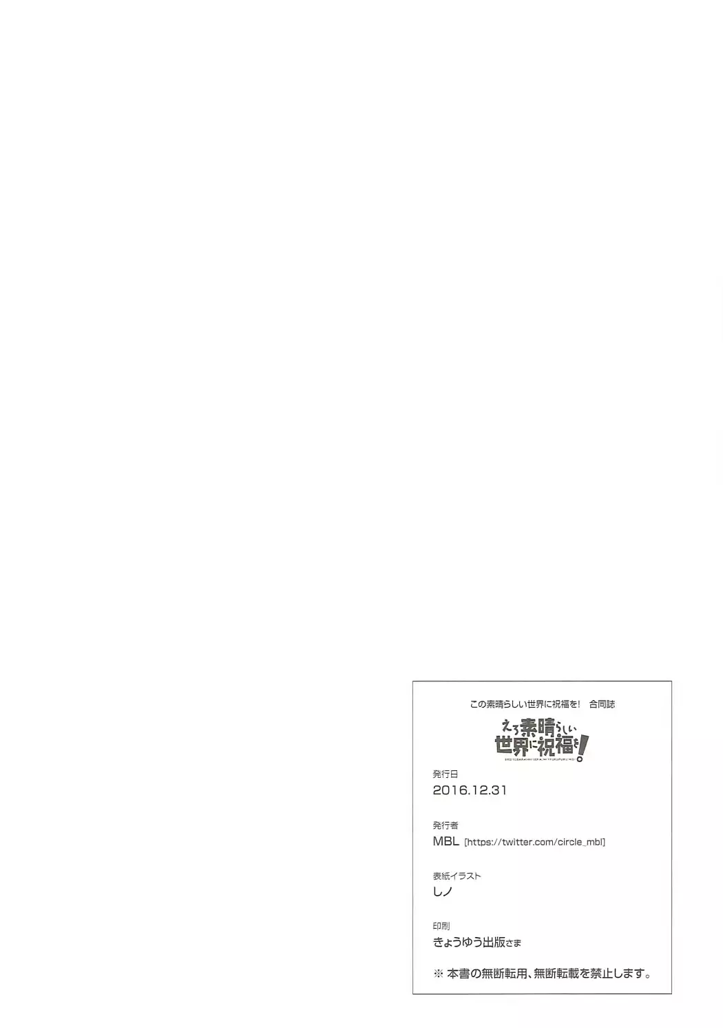 (C91) [MBL (Various)] Ero Subarashii Sekai ni Syukufuku o! (Kono Subarashii Sekai ni Syukufuku o!)
