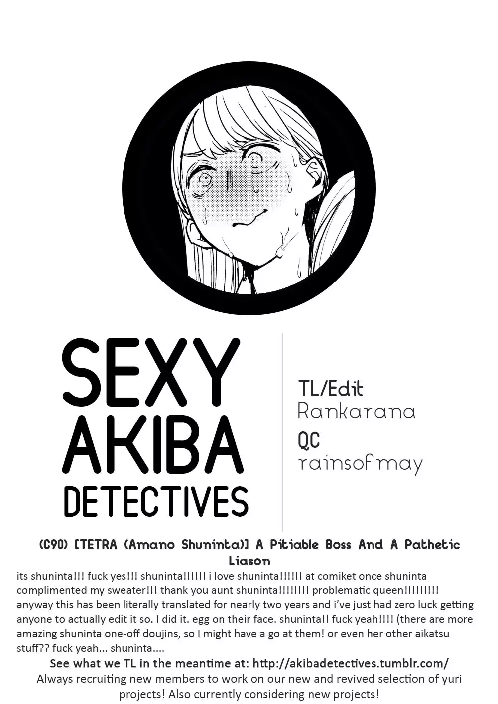 (C90) [TETRA (Amano Shuninta)] Fubin Joushi to Furin Jouji | A Pitiable Boss And A Pathetic Liason [English] [Sexy Akiba Detectives]