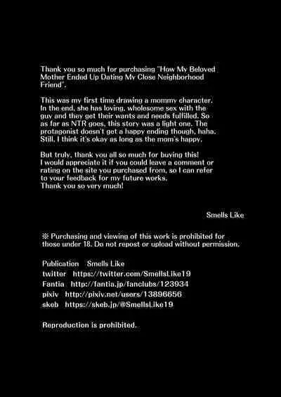 [Smells Like] Daisuki na Kaa-san ga, Boku to Naka ga Ii Kinjo no Onii-chan to Tsukiau Koto ni Natta Hanashi | How My Beloved Mother Ended Up Dating My Close Neighborhood Friend [English] [Team Ama2] Hentai [すめるすらいく] 大好きな母さんが、僕と仲がいい近所の兄ちゃんと付き合う事になった話 [英訳]